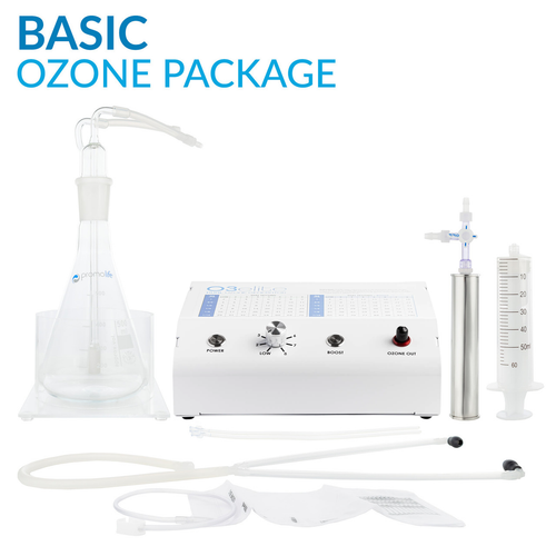 This package includes everything you need for ozone insufflations, ozonating oil, and ozonating water except for the oxygen tank or oxygen concentrator. If you are going to use an oxygen concentrator, be sure that it is of medical grade and can deliver oxygen with a saturation of 93% or more at 1 lpm or less.